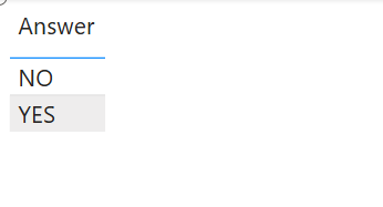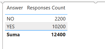 Jak widzisz, po wybraniu atrybutu [Answer] z mojej tabeli i wyświetleniu tej informacji w tabelce, ukazały się tylko 2 opcje. „YES” i „NO”.